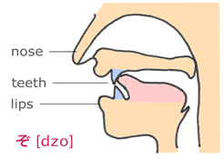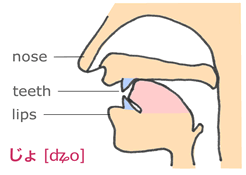 「ぞ」は したのさきと はで すきまをつくってはつおんしますが、「じょ」は したのまえのぶぶんと Aのところで すきまをつくって はつおんします。