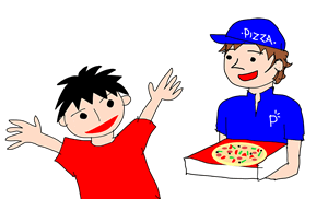うん。あ、ピザ来た!
