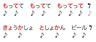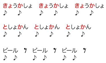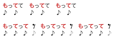 如果是3个或者奇数个假名的时候,就把最后一拍的后半拍空出来。