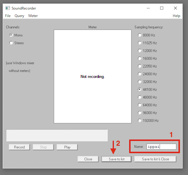 2. Pada menu 「Sound Recorder」 klik 「Record」, lalu lafalkan, kemudian klik「Stop」(contoh: ippai)